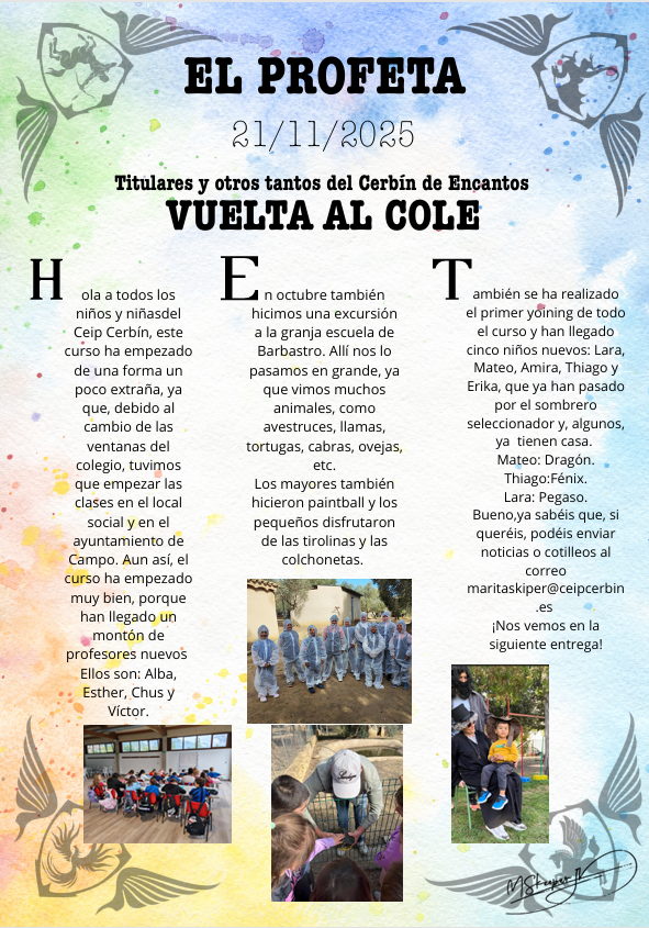 Con un poco de retraso subimos El Profeta número 1 del Cerbín de este curso. Correspone al mes de septiembre y octubre y lleva el título de Comienzo del Curso.