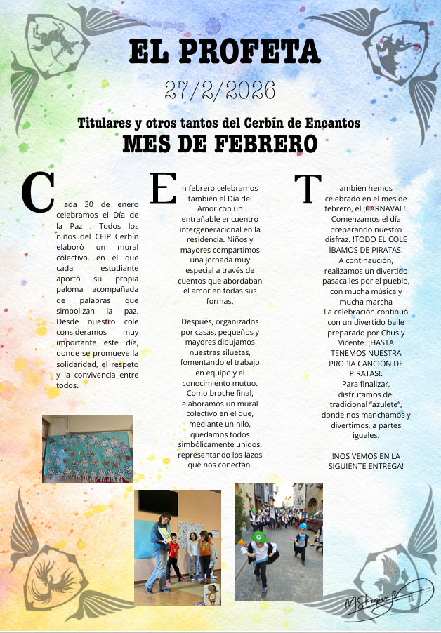 Esta pasada semana al llegar a clase lo teníamos pegado en la puerta, se trata del último Profeta, el 3 de este curso y el del mes de febrero.